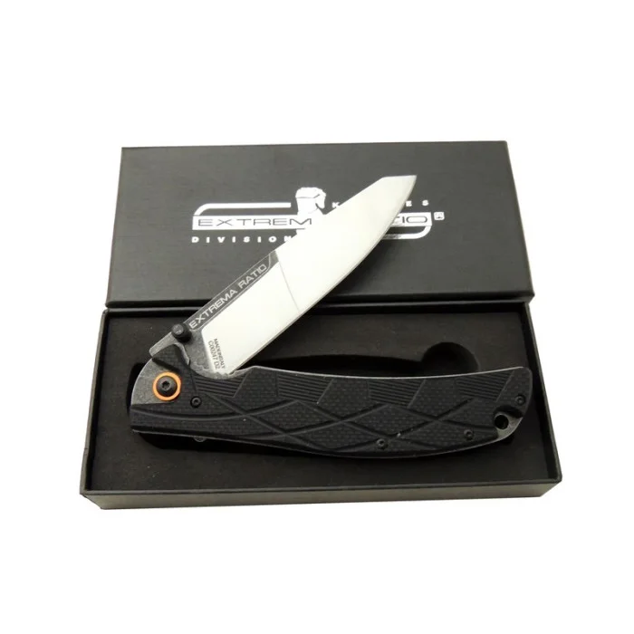 "Extrema Ratio 58 Hrc Siyah Çakı, kompakt tasarımı ve yüksek sertlikte D2 çeliğiyle outdoor ve günlük kullanım için mükemmel bir seçimdir."